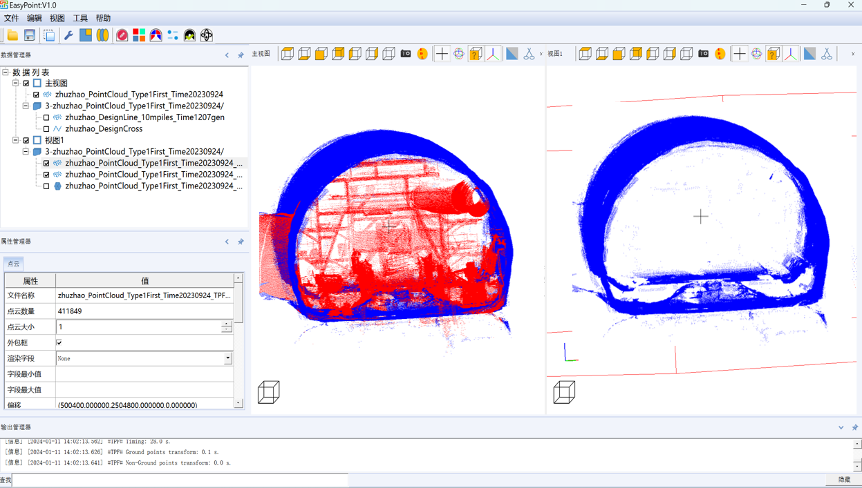 地面滤波目的是区分地面和地物,其结果直接影响后续点云分割分类等处理的精度和效率,是点云处理中基础且关键的步骤。EasyPoint地面滤波参数极少、速度极快,精度较高。