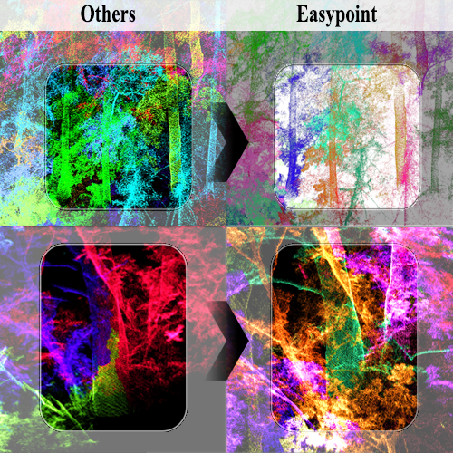 所以有些软件看起来处理结果非常好,但用户亲自使用却非常困难,结果也很差。EasyPoint的秘密正在于此,开发创新性算法,不仅参数少易于设置,而且参数的通用性和鲁棒性强;从用户的角度出发,将困难留给自己,让用户易于使用。