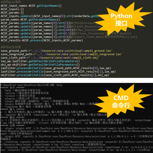 EasyPoint支持命令行和Python接口,用户可通过调用脚本进行批处理,或将EasyPoint功能整合到自己的处理流程中。